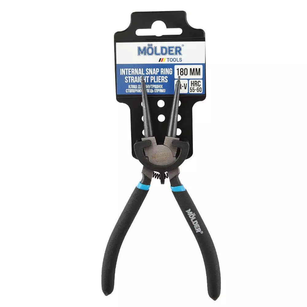 Кліщі для внутрішніх стопорних кілець, прямі MOLDER 180мм, Cr-V, HRC 55-60, поліровані (72шт/ящ)