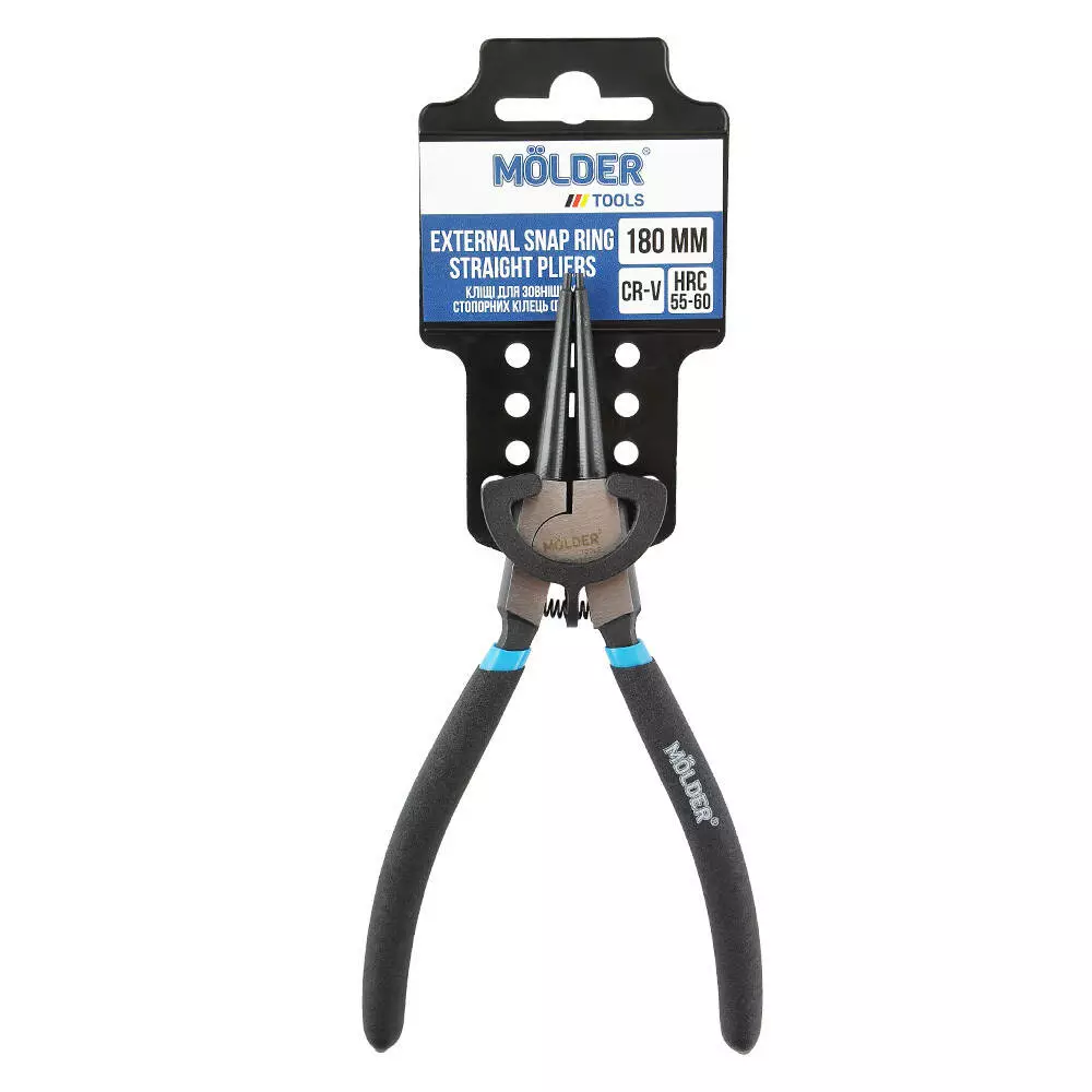 Кліщі для зовнішніх стопорних кілець, прямі MOLDER 180мм, Cr-V, HRC 55-60, поліровані (72шт/ящ)