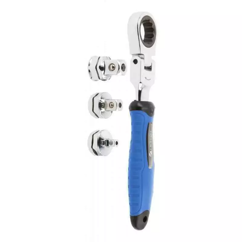 Ключ с трещоткой и шарниром 1/2" 1/4" 3/8" 255мм CrV Hogert со сменными адаптерами (HT1R395)