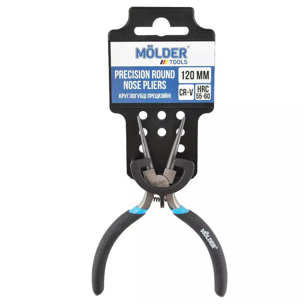 Круглогубці прецизійні MOLDER 120мм, Cr-V, HRC 55-60, поліровані, оліє-стійка, прог. ручка(120шт/ящ)