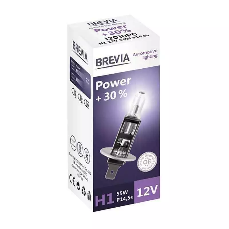 Галогеновая лампа BREVIA H1 POWER +30% 12010PC – в производстве данных ламп применяются инновационные технологии с использованием высококачественным материалов и производством лучших продуктов. Галогеновая лампа BREVIA H1 POWER +30% 12010PC соответствует высочайшим стандартам качества OEM, что позволяет вам максимально уверенно и эффективно передвигаться в темное время суток.