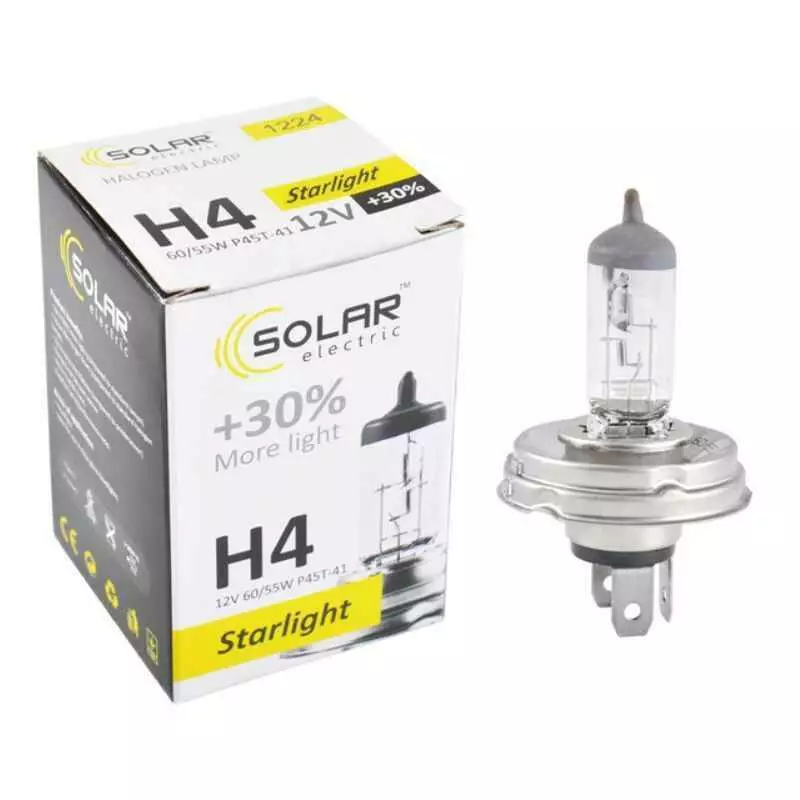 Лампа галогенная цоколь H4 Solar 12V 60/55W 30% 1шт (1224)