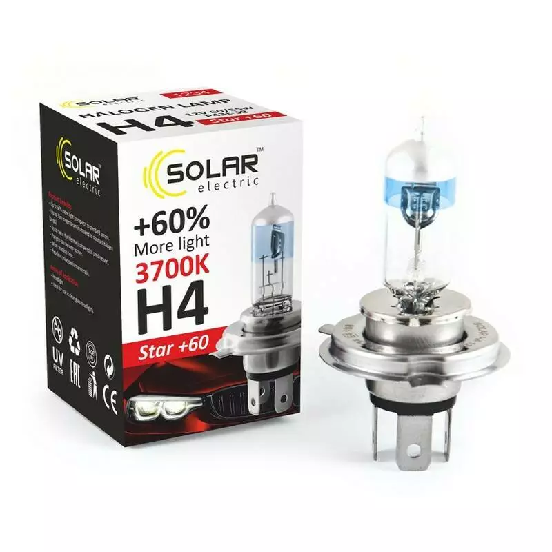 В производстве данных ламп применяются инновационные технологии с использованием высококачественным материалов и производством лучших продуктов. Галогеновая противотуманная лампа Solar H4 12V 60/55W P43t-38 Starlight +60% (1234) соответствуют высочайшим стандартам качества OEM, что позволяет вам максимально уверенно и эффективно передвигаться в темное время суток.