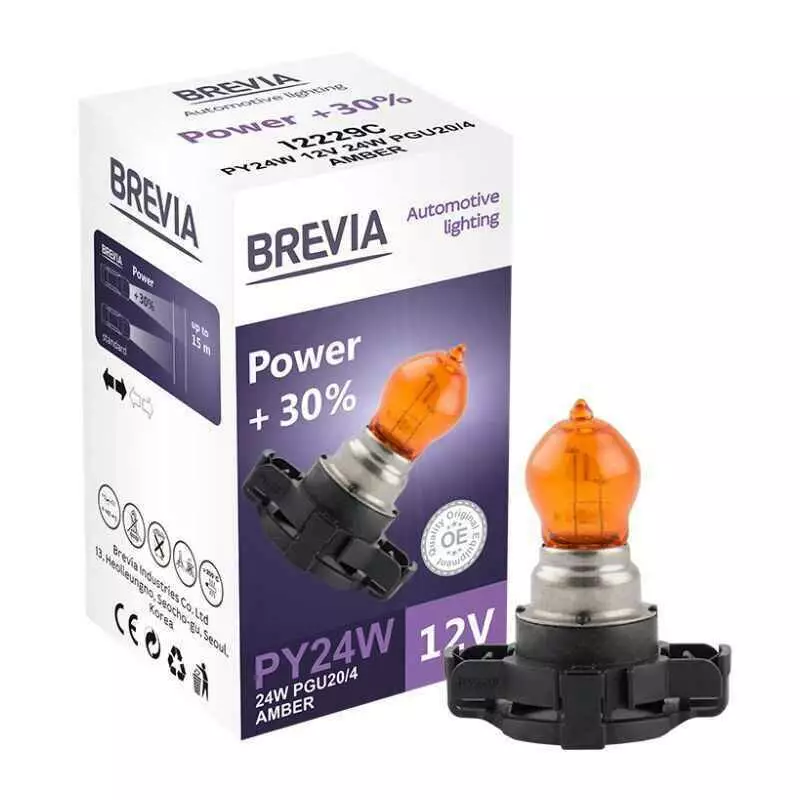 Brevia PY24W 12V 24V PGU20/4 AMBER Power +30% CP