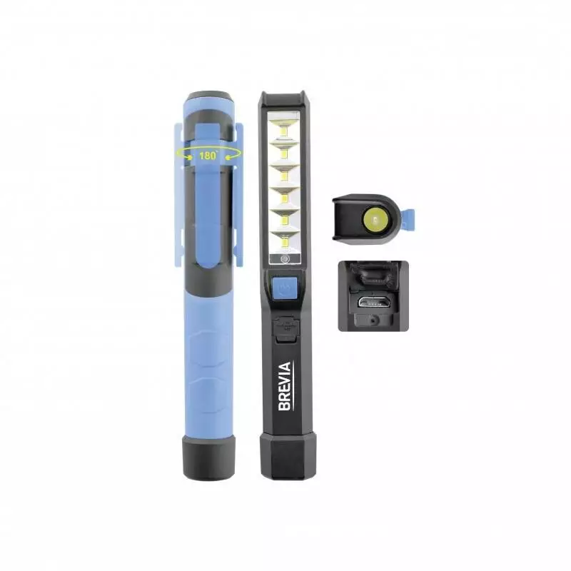 "Brevia LED Pen Light 6SMD+1W LED 150lm, IP20, IK05, 900mAh, время работы до 3 ч., регулируемая клипса 180°, магнит, microUSB порт, кабель в комплекте