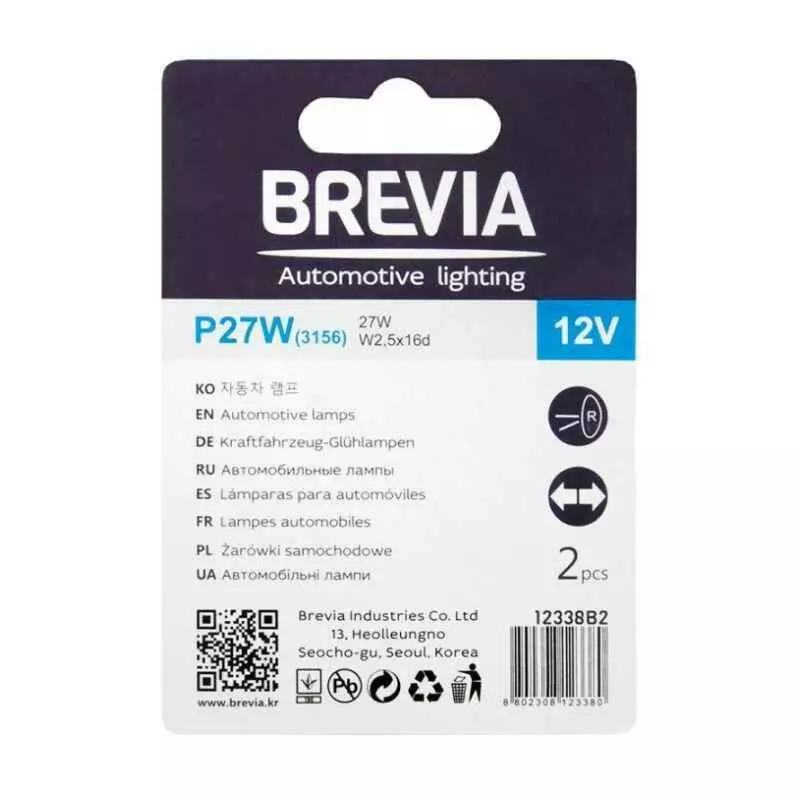 Brevia P27W 12V 27W W2.5x16d blister 2 шт