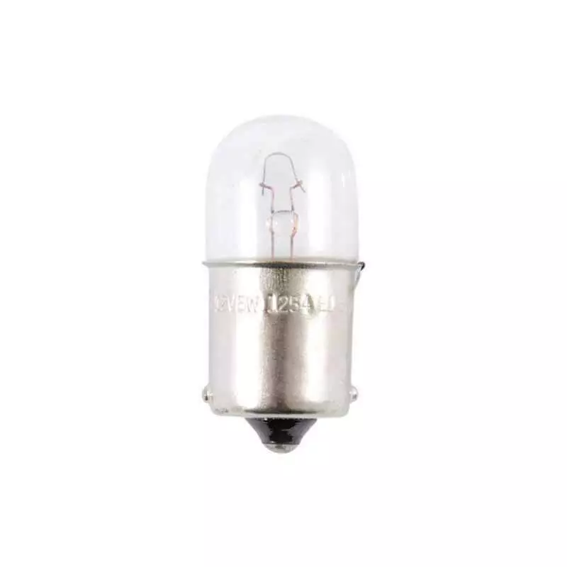 Тип лампы R5W/BA15s - это цилиндрический байонетный цоколь, с одним контактам, который легко вставляется и поворачивается на 90 градусов. Потребляемая мощность в 5 Вт, с силой светового потока 25 Лм, для выполнения своей функции. Предназначены для транспортных средств с напряжением бортовой сети 12 В.