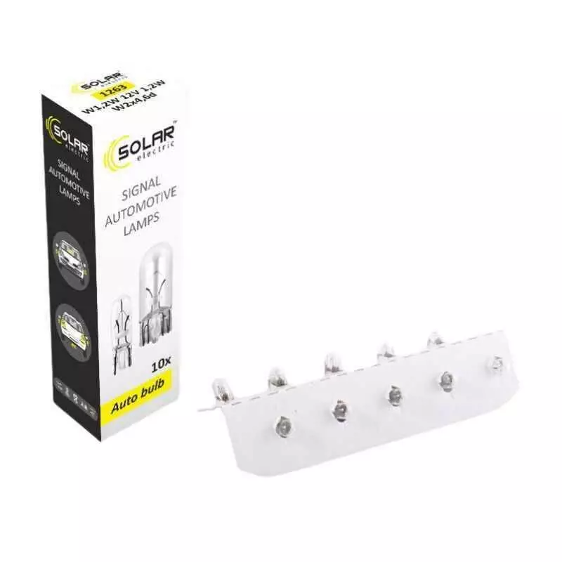 Это лампочка накаливания от немецкой компании SOLAR, которые применяются во внешнем освещении для передних и задних указателей поворотов, габаритных и стояночных огней, сигналов заднего хода и торможения, а также подсветки номерного знака. Отличается увеличенным сроком службы и надежностью. Сохраняет стабильную световую мощность на всем протяжении срока эксплуатации. При ярком излучении они помогают своевременно сообщить о своих намерениях другим участникам дорожного движения, во избежании аварийных ситуаций, при любых погодных условиях. Конструкция устойчивая к вибрациям и выдерживает экстремальные нагрузки, тем самым увеличивается срок службы. Колба неокрашенная, прозрачная, изготовлена из качественного стекла. Размер стандартный, соответствует посадочному месту, а установка таких лампочек очень проста, Вы это можете сделать самостоятельно, в домашних условиях, главное не притрагиваться к колбе лампочки.