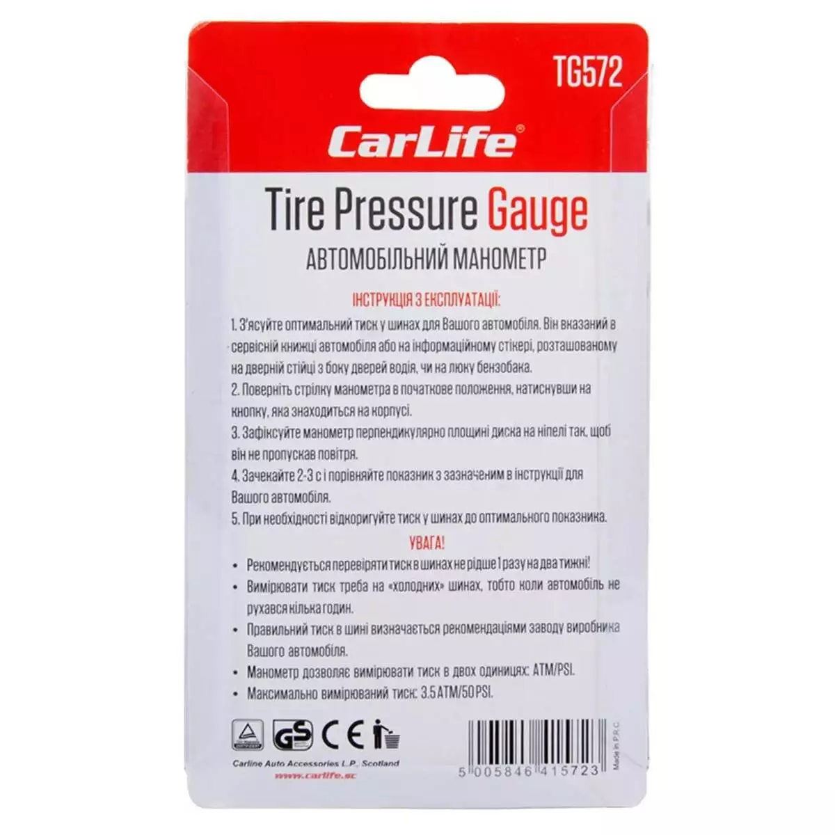 Манометр автомобильный шинный CarLife TG572 3,5 атм