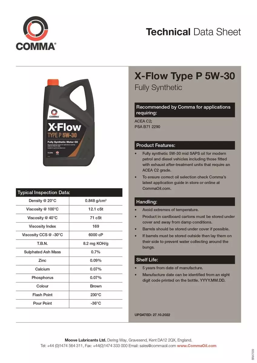 Моторна олива Comma X-FLOW TYPE P 5W-30 API CF/SM; ACEA C2 5л (4шт/уп)