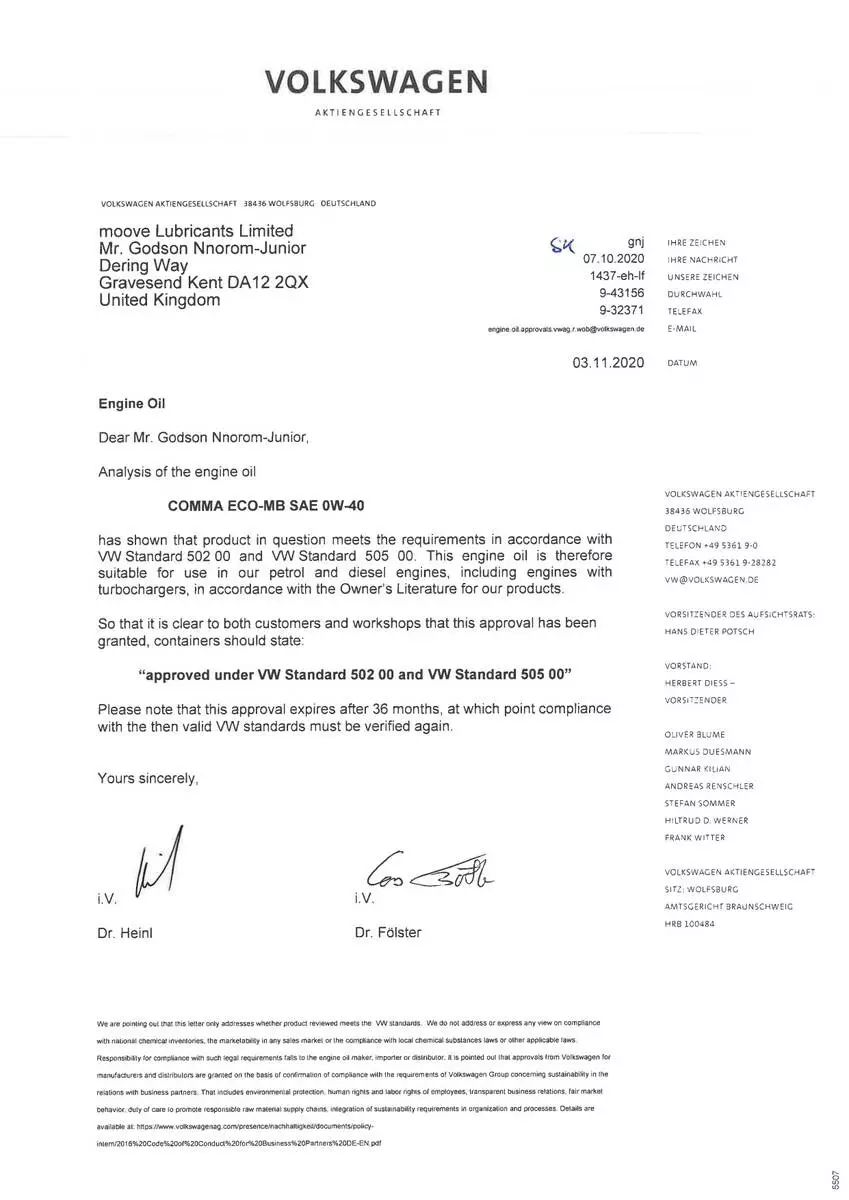 • Допуски ОЕМ: Ford WSS-M2C937-A, MB226.5, MB229.5, Porsche A40, Renault RN0700,Renault RN0710,VW 502.00, VW 505.00