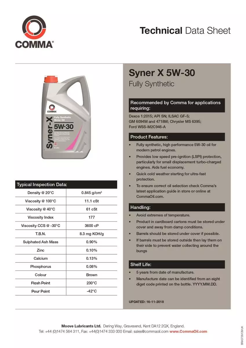 • В’язкість за SAE: 5W-30