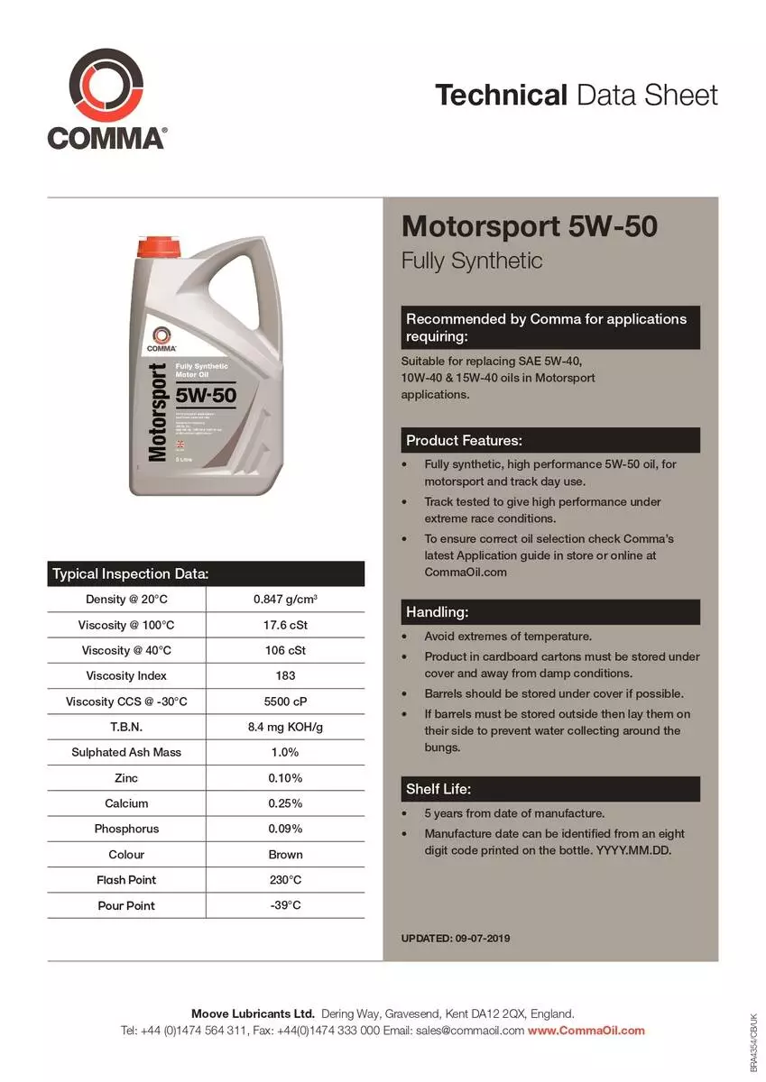 • В’язкість за SAE: 5W-50