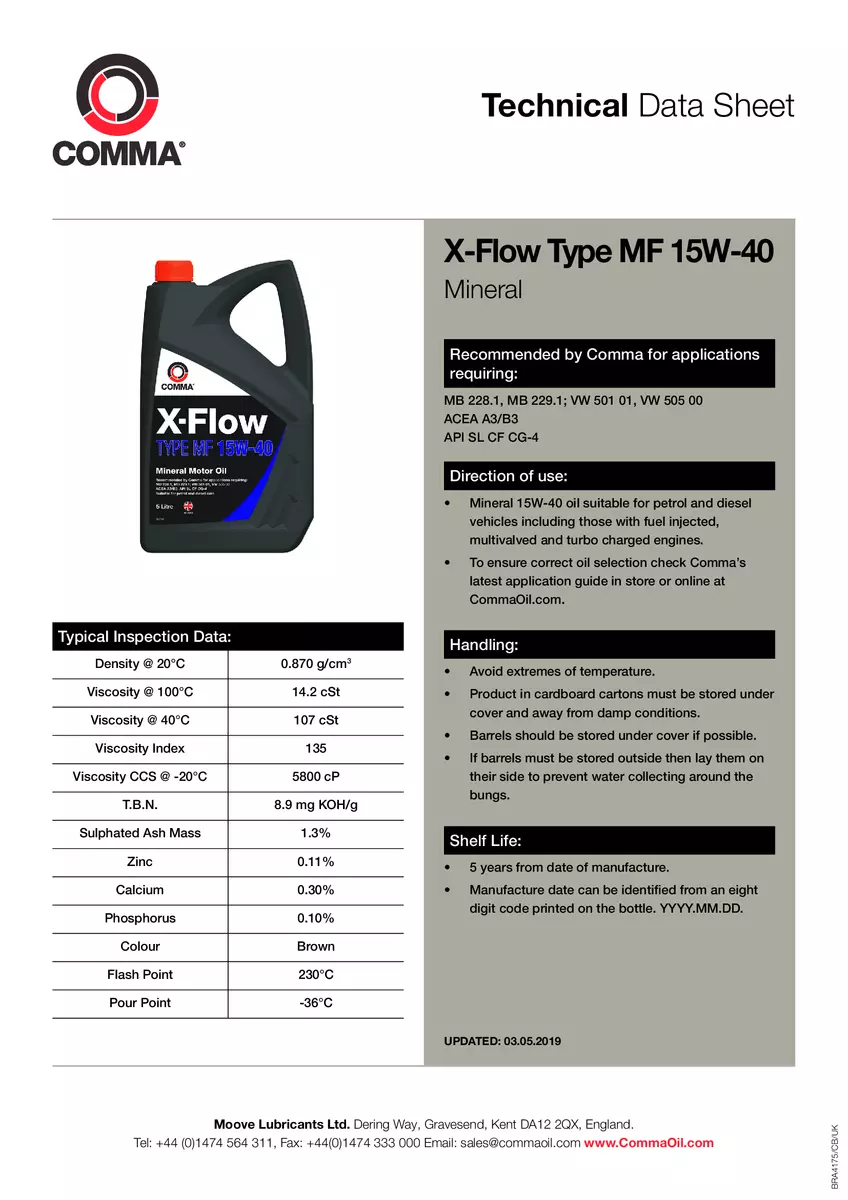 Моторное масло Сomma X-FLOW TYPE MF 15W40 API SL/CF/CG-4; ACEA A3/B3 5л (4шт/уп)