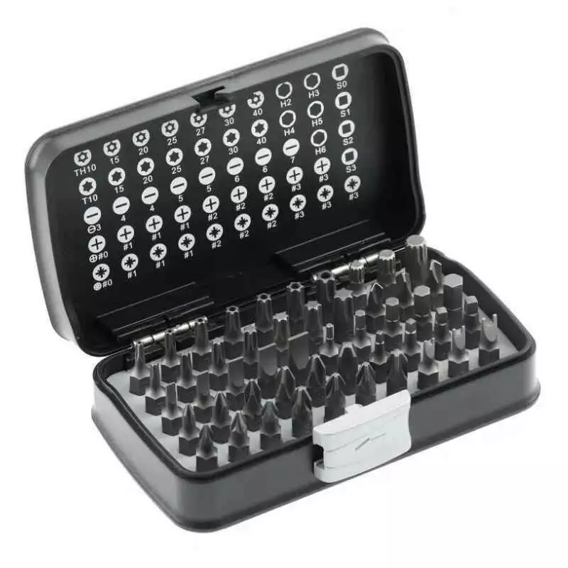 • Накінечник: PH:0-1-2-3, PZ:0-1-2-3, SL:3-4-5-6-7, T:10-15-20-25-27-30-40, TT:10-15-20-25-27-30-40, HEX:2-3-4-5-6, М:5-6-8, Tri-Wing:1-2-3, S:0-1-2-3, SP:4-6-8