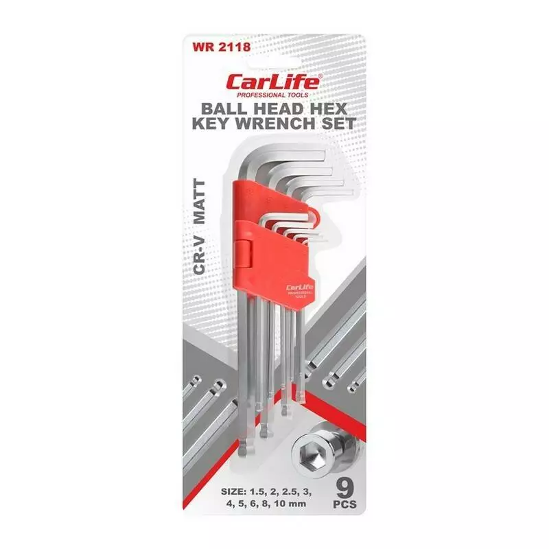 Набор Г-образных ключей CARLIFE шарообразный шестигранник средний 9 шт (WR 2118)
