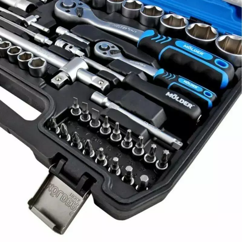 Набор инструментов Molder MT60082 на 82 предмета — это идеальный выбор для тех, кто ценит максимальную функциональность и надежность в одном кейсе. Комплект подходит для обслуживания автомобилей, выполнения слесарных и монтажных работ, ремонта дома, а также для использования на профессиональных СТО и в мастерских. В составе набора — разнообразные трещотки, реверсивные рукоятки, головки, карданные шарниры, гибкие и стандартные удлинители, ключи рожно-накидные и широкий ассортимент бит. Все элементы изготовлены из высококачественной стали CrV, что обеспечивает долгий срок службы и устойчивость к износу даже при интенсивной эксплуатации. Пластиковый кейс обеспечивает надежное хранение и быстрый доступ к каждому инструменту.