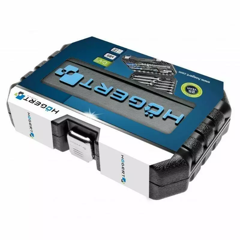 Набор инструментов Hogert HT1R225 на 85 предметов — это мощный профессиональный комплект, разработанный для обслуживания автомобилей, работы в гараже или на СТО. В одном кейсе собрано всё необходимое: торцевые и свечные головки, трещотки, удлинители, ключи, биты и аксессуары. Инструменты изготовлены из прочной стали CrV и CrMo, что гарантирует их надежность даже при интенсивной эксплуатации.