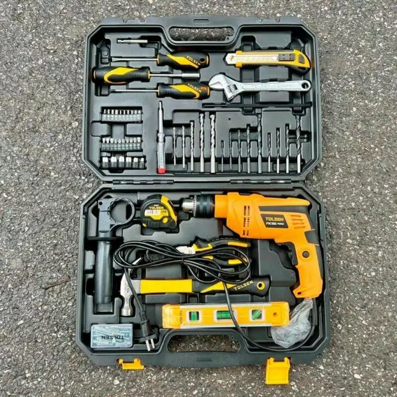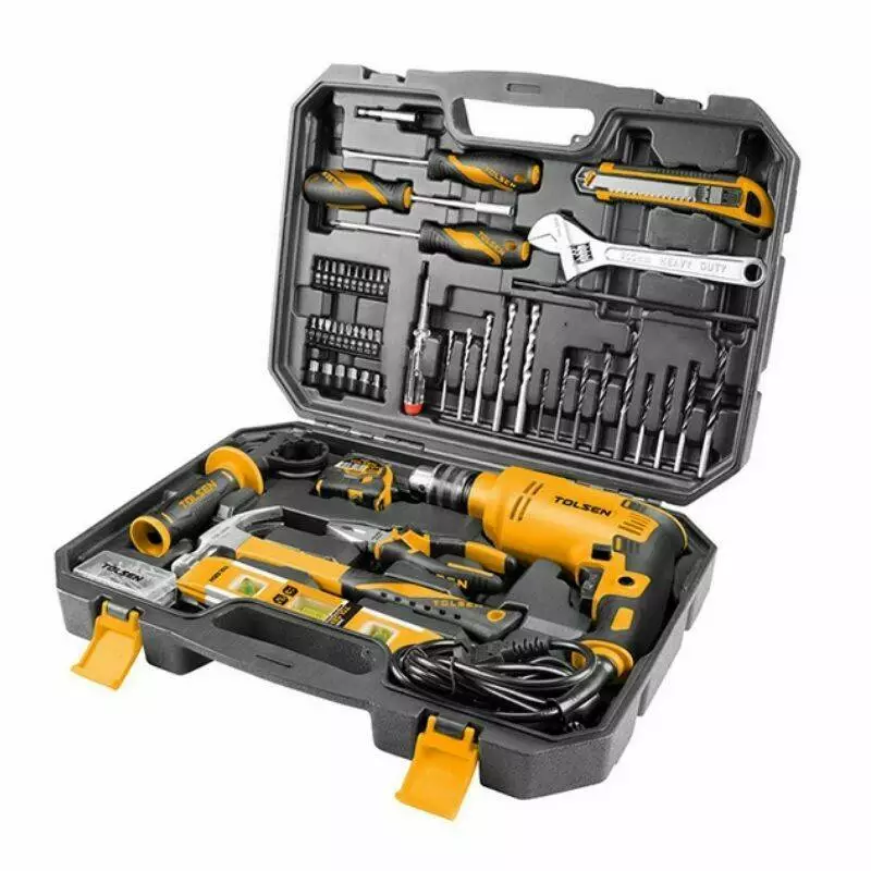 Набор ручного инструмента Tolsen 79685 из 95 предметов — это полноценное решение для выполнения столярных, слесарных и бытовых работ. В комплекте — всё необходимое: от мощного ударного дриля и бит до сверл по дереву, металлу и кирпичу. Такой набор будет полезен как на домашнем рабочем месте, так и на строительной площадке или в гараже.