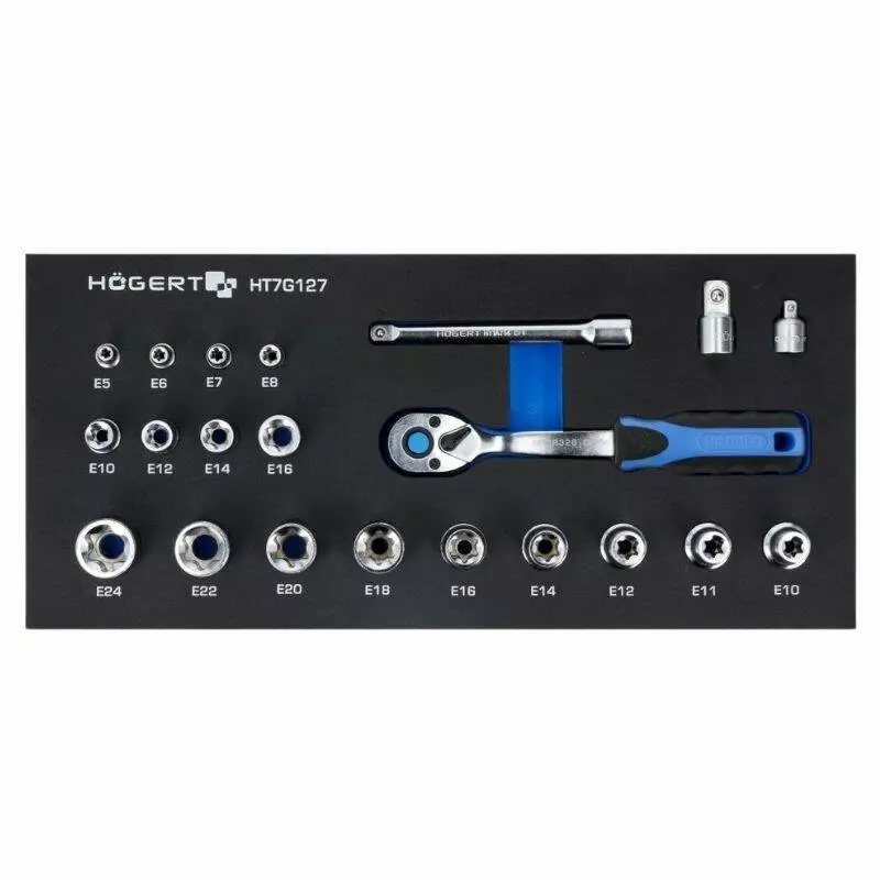 Набор инструментов с трещоткой 3/8", 22 шт., ложемент Eva Hogert