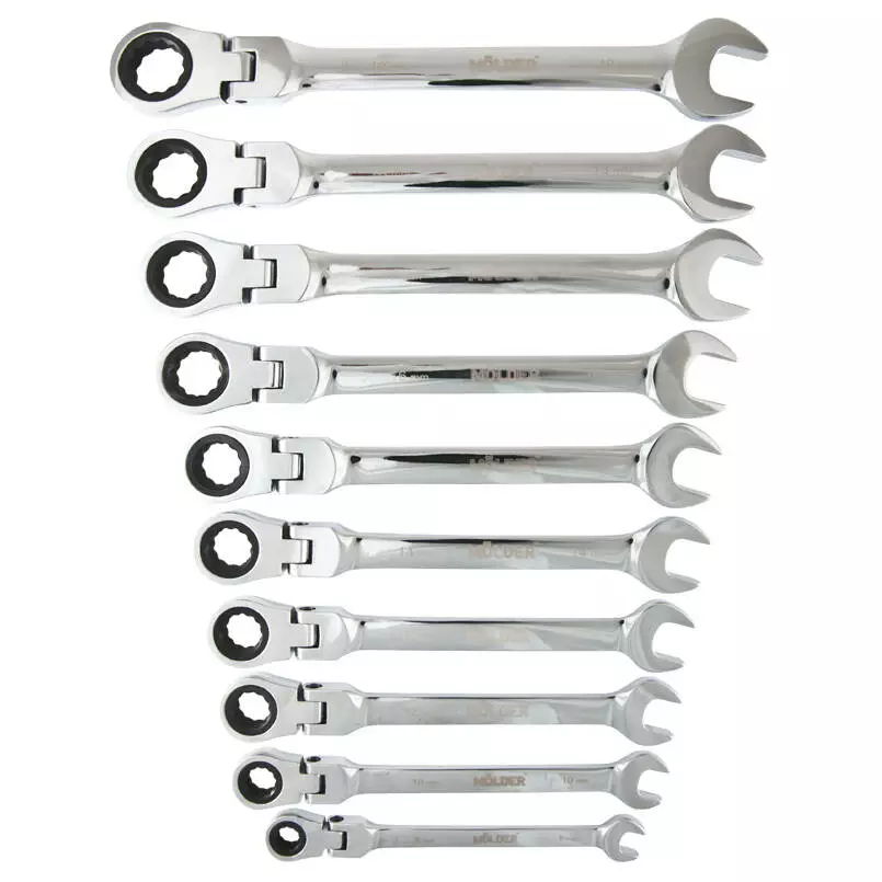 Набор комбинированных ключей Molder MT57110 представляют из себя надежный инструмент, который может быть использован во всех сферах деятельности, где это необходимо. Основа набора комбинированных ключей Molder MT57110 – это хромованадиевая сталь, которая покрыта никель-хромированным покрытием. Ключ имеет 72 зубцовой механизм. Технический стандарт DIN 3113.