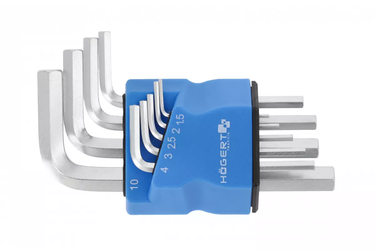 Набор коротких шестигранных Г-образных ключей 1,5-10 мм, S2, 9 шт. (HT1W820)