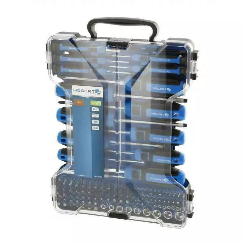 Набор отверток 102шт CrV сталь S2 Hogert с магнитным захватом для точных работ PH SL (HT1S102)