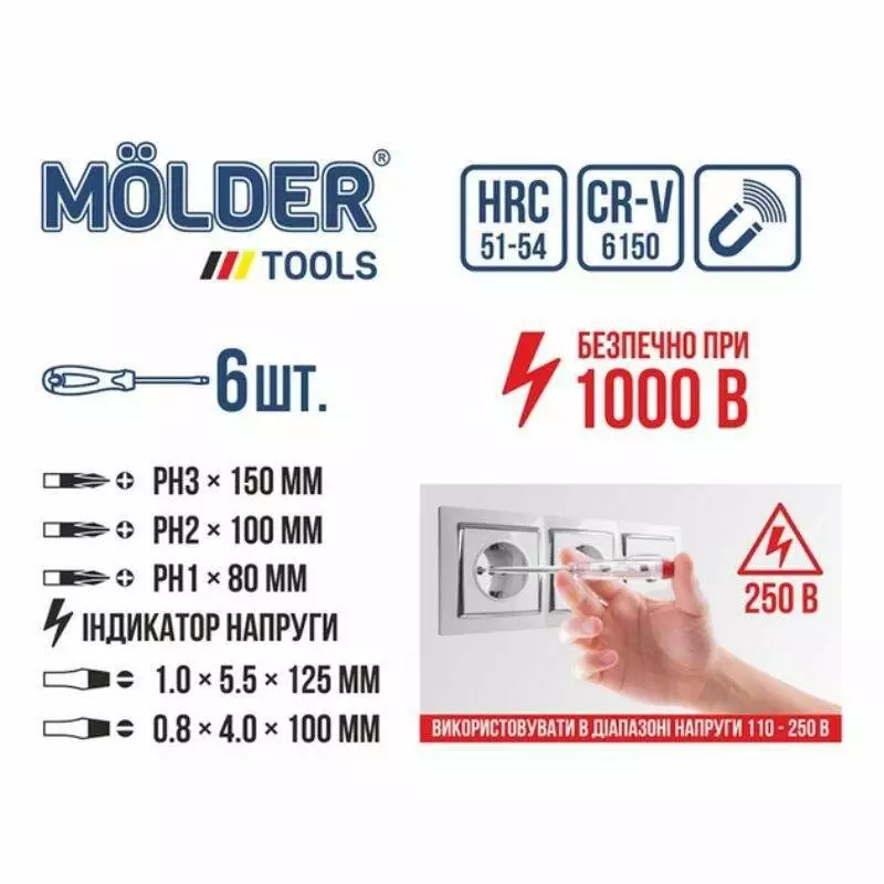 Набор отверток диэлектрических Molder, VDE 1000 В (12шт/уп)