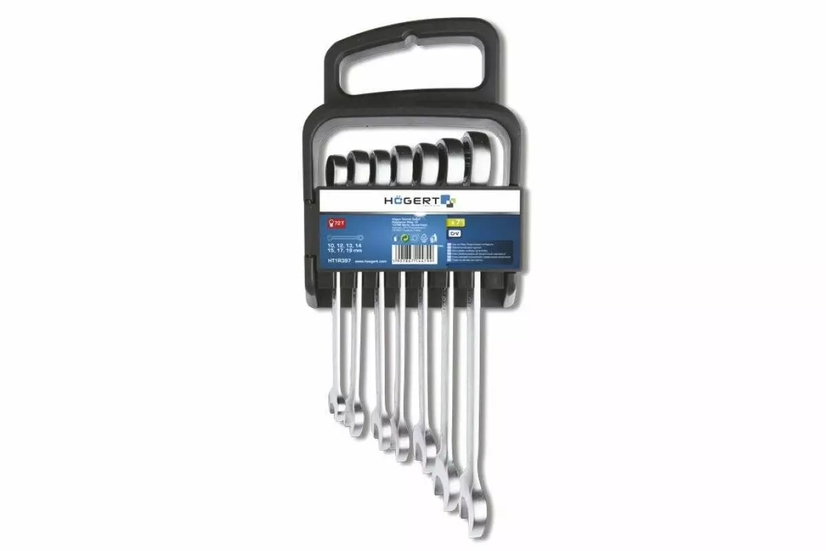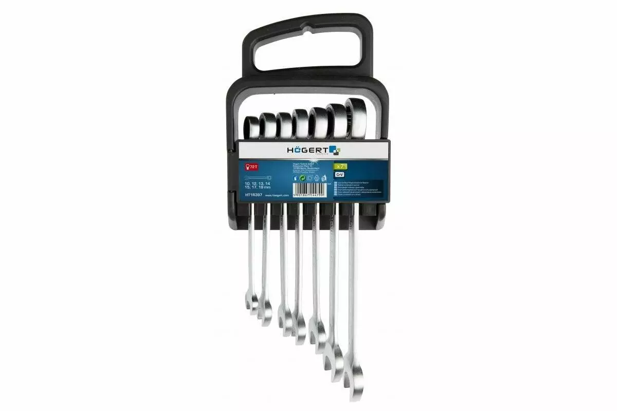 Набор рожково-накидных ключей c трещоткой, 10-19 мм, 7 шт., 72T,