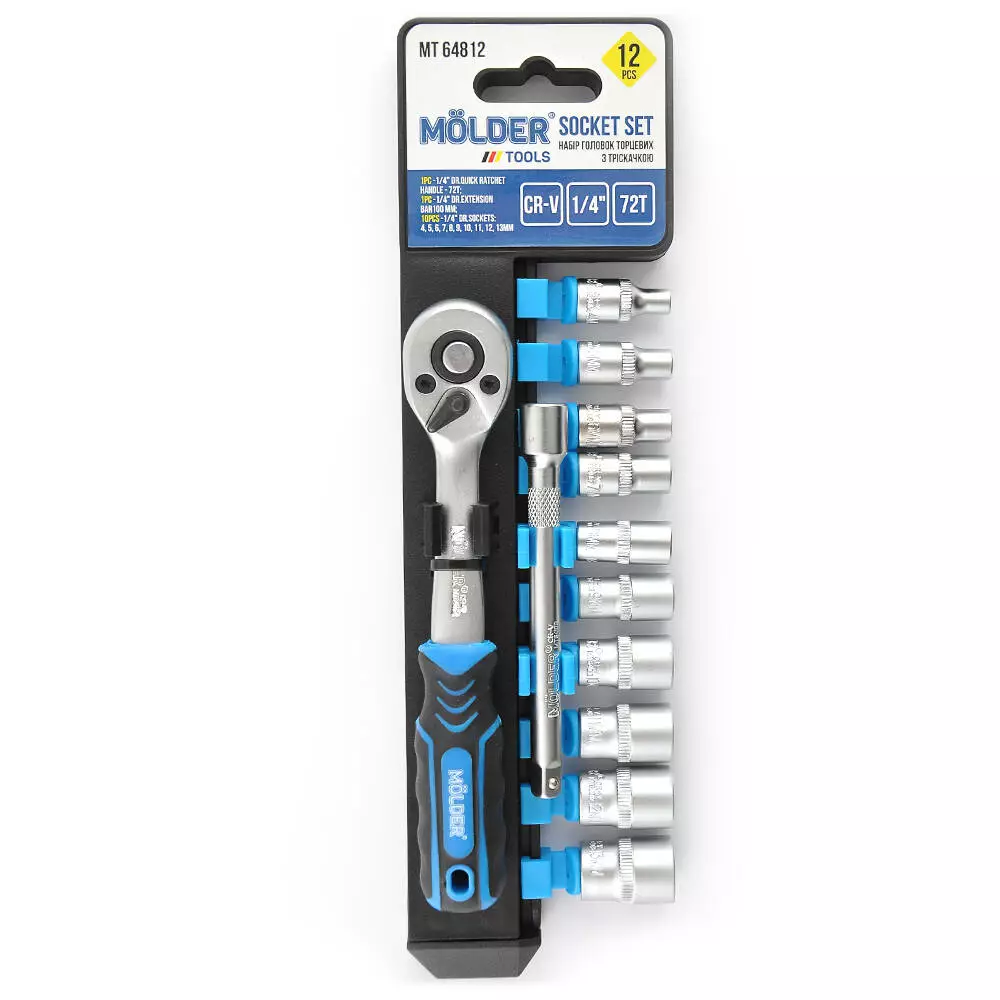 1/4" 72Т, CR-V, 4-13 мм, 12шт (трещотка 1/4" 72Т удлинитель 1/4"