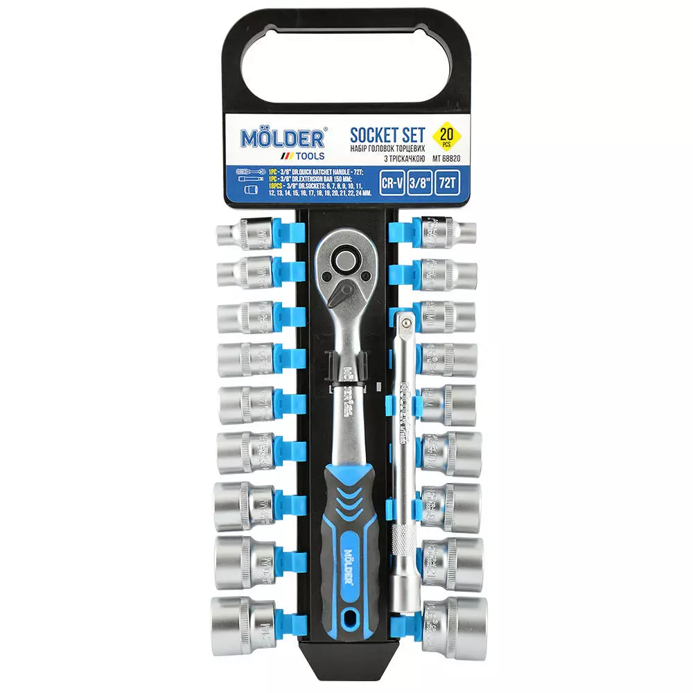 3/8" 72Т, CR-V, 6-24 мм, 20шт (трещотка 3/8" 72Т удлинитель 3/8"