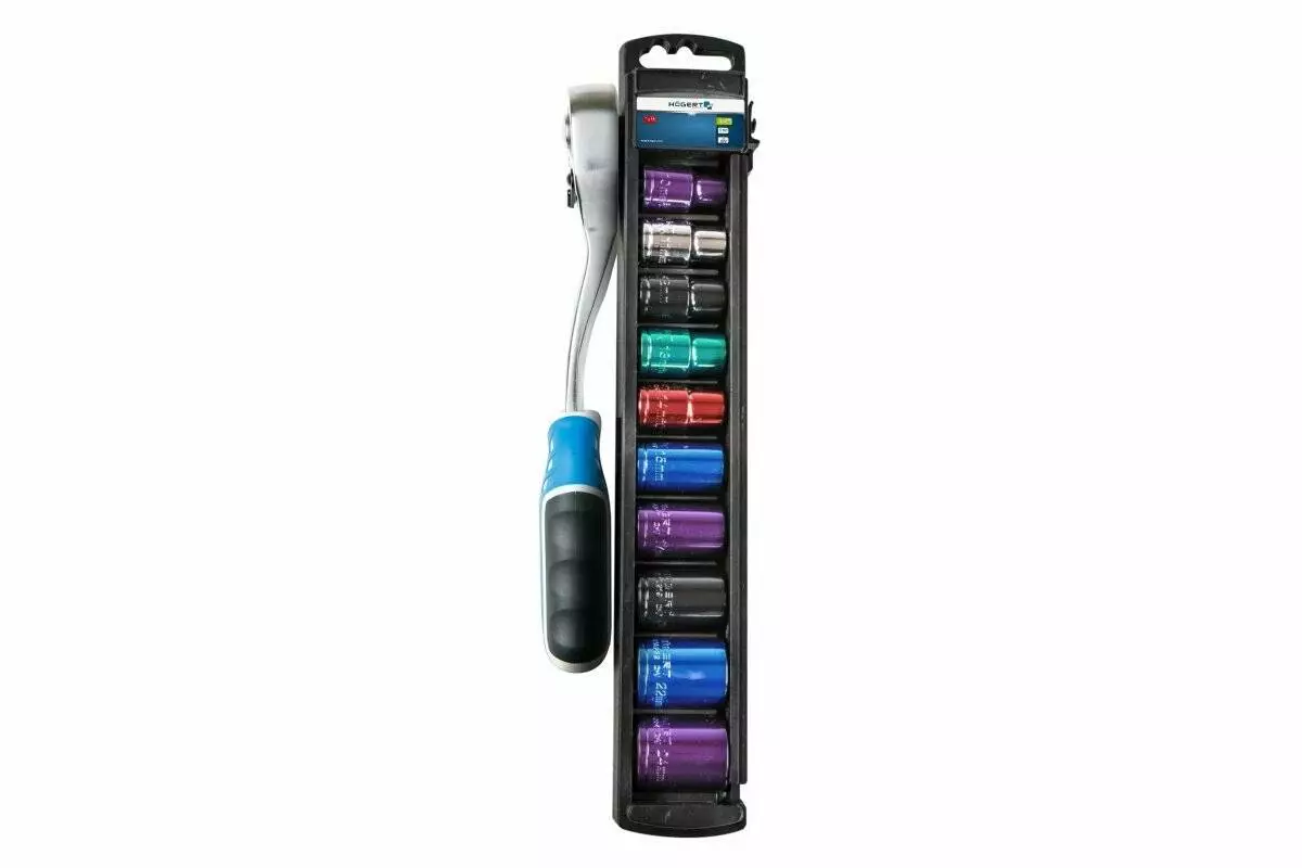 Набор цветных торцевых головок 10 шт. с трещоткой 1/2", 72 зубца (HT1R382)