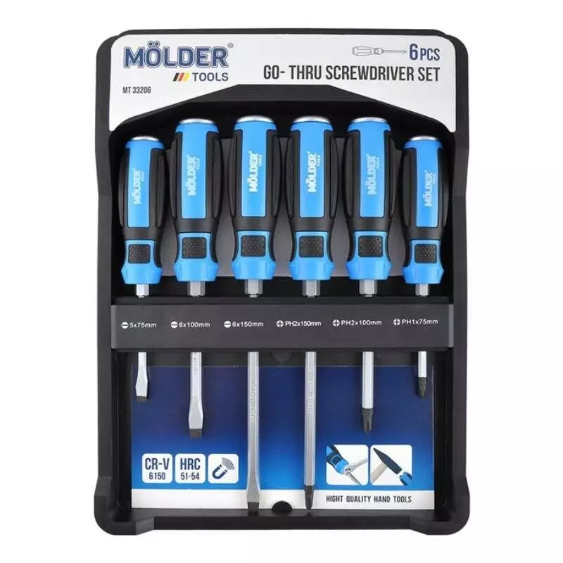 Набор ударных отверток PH/ SL Molder CrV 6150 6 шт с шестигранной опорой (MT33206)