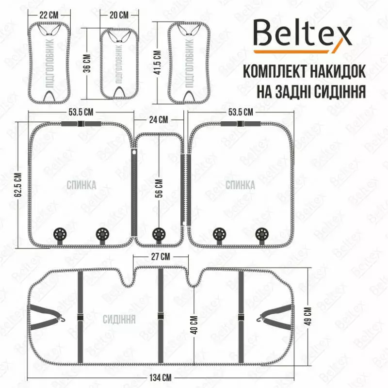 • Комплектація набору: Передні сидіння - 2 елементи, Підголівники - 2 елементи