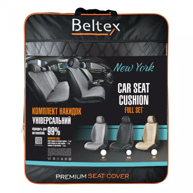 Накидки на сиденья авто премиум передние и задние премиум класса Beltex New York комплект черный (BX84100)