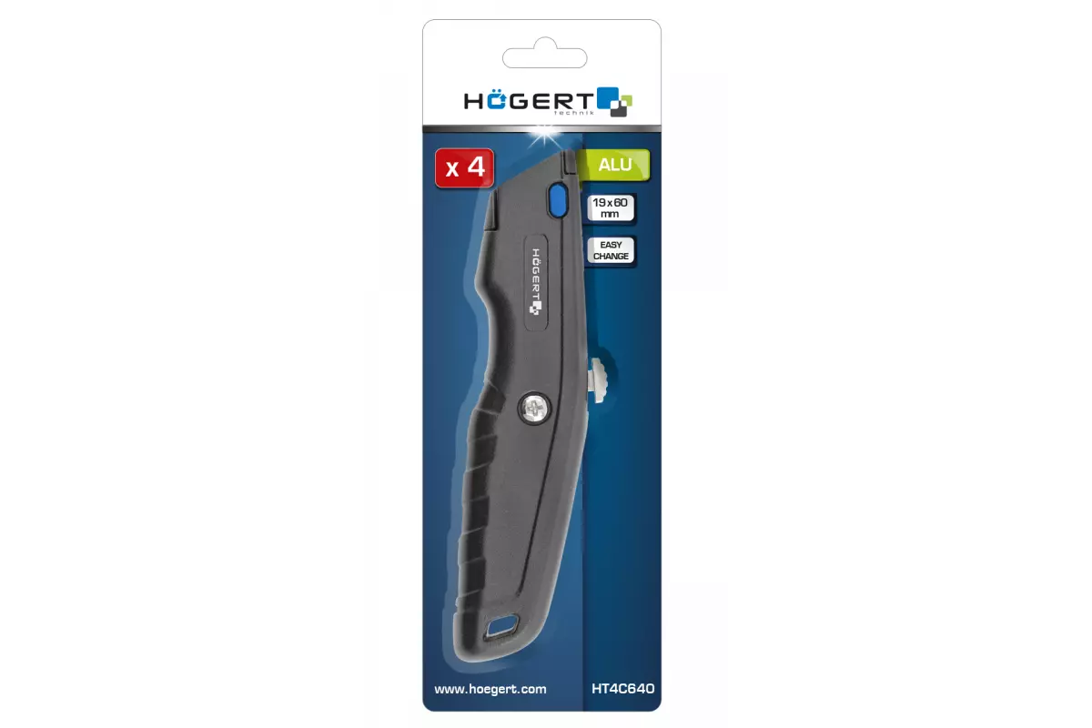 Нож алюминиевый с выдвижным трапециевидным лезвием, 1+3 лезвия (HT4C640)