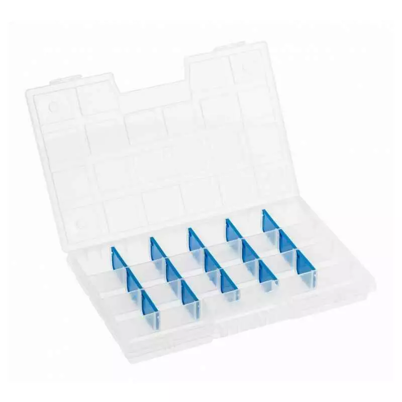 Органайзер оптимизирован для повседневного использования. Удобная ручка позволяет переносить его без усилий. Благодаря компактным размерам органайзер не занимает много места, легко помещается в шкафу или на полке. Конструкция изделия позволяет быстро менять конфигурацию отделений. Это делает органайзер гибким для хранения различных предметов – от винтов до электронных компонентов.