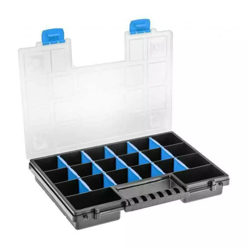 Органайзер Hogert HT7G024 позволяет гибко обустраивать пространство благодаря регулируемым перегородкам. Такая конструкция подходит для хранения различных типов мелких предметов: шурупов, гаек, болтов, бит, сверл, клемм и других комплектующих. Количество отделений можно изменять под свои потребности.