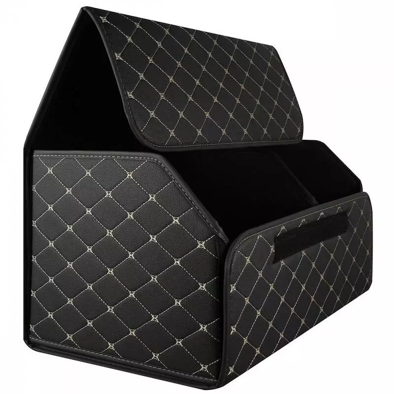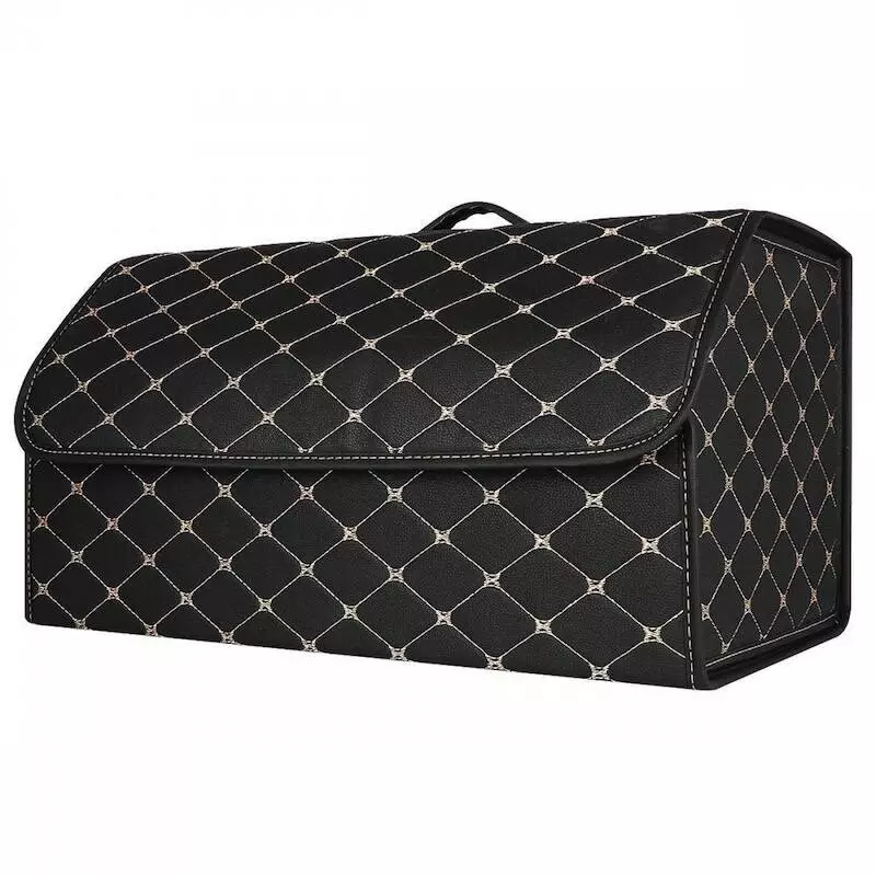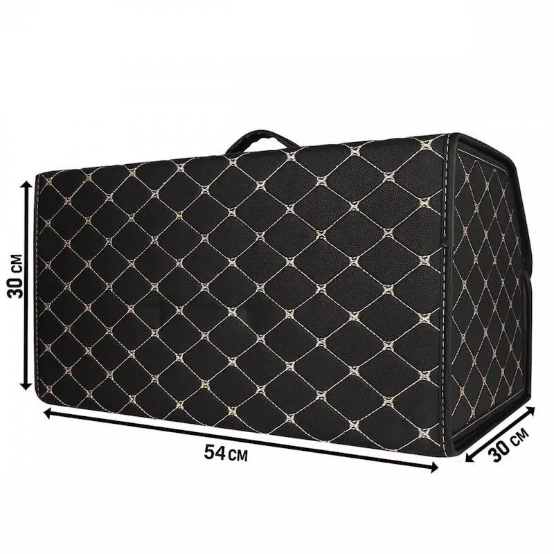 Органайзер в багажник автомобиля 54см*30см*30см черный с бежевой строчкой