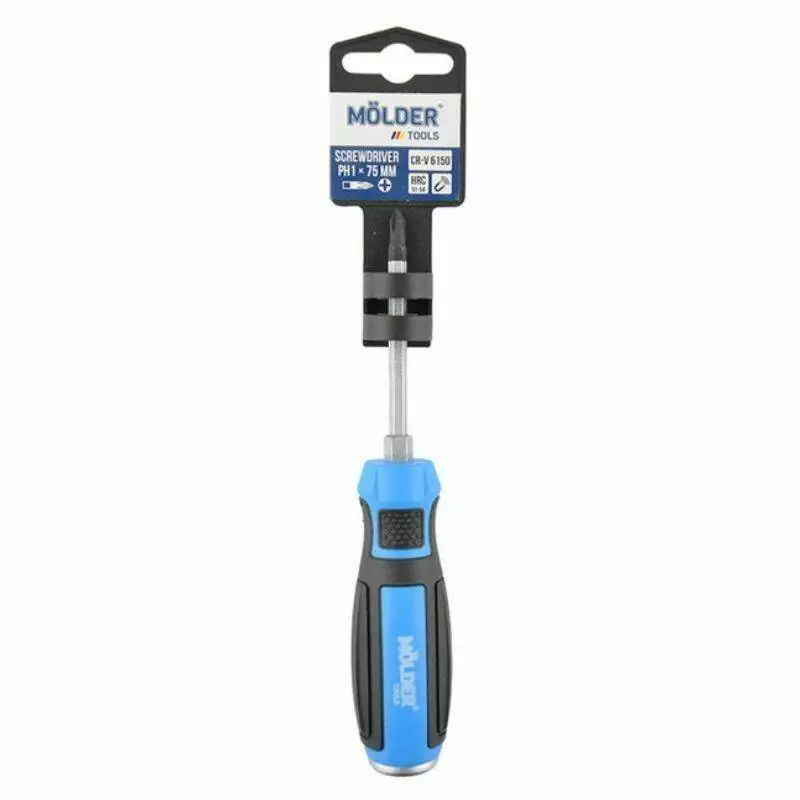 Отвертка крестовая, ударная с шестигранной опорой Molder, PH1x75mm (12шт/уп)