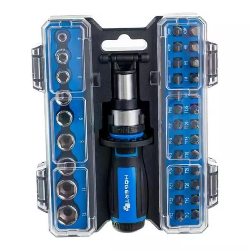 Реверсивная отвертка с набором насадок 36 шт Hogert