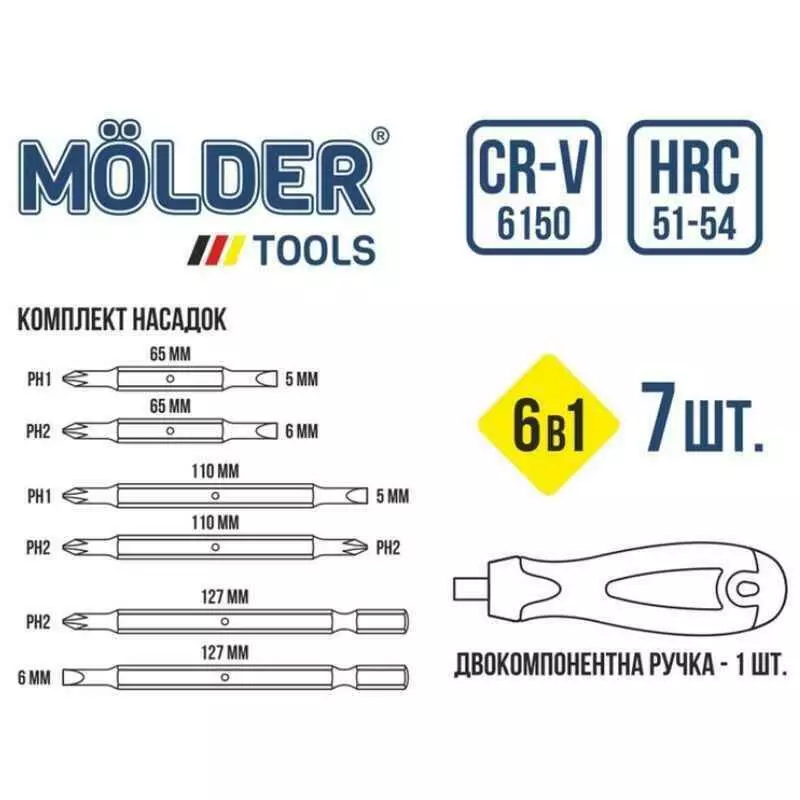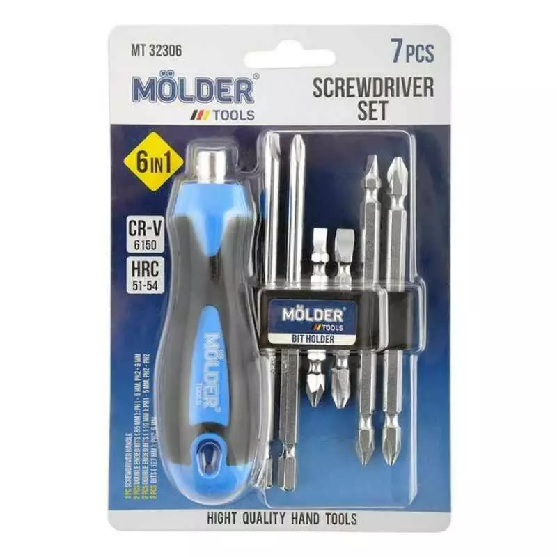 Отвертка со сменными насадками Molder, 6 в 1 (12шт/уп)
