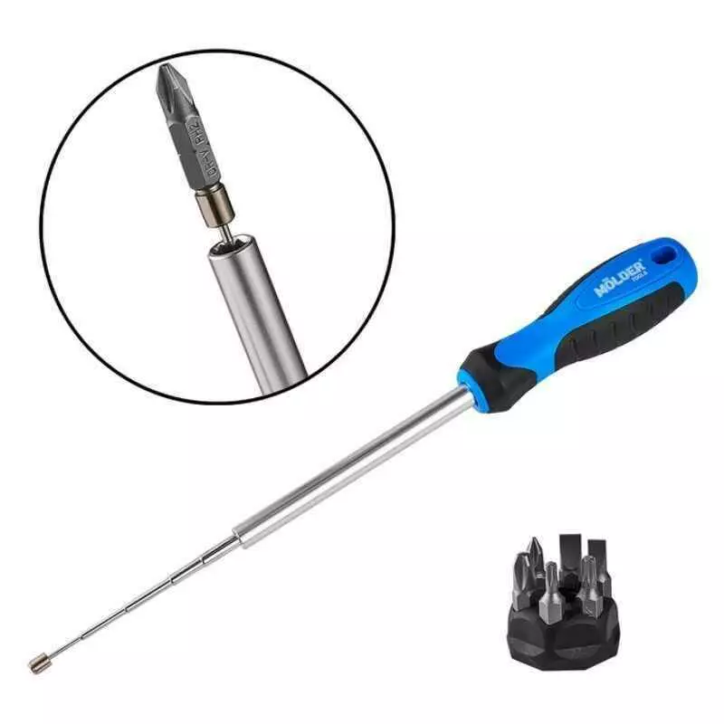 Отвертка с битами 8шт Molder CrV телескопический стержень с магнитным захватом PH SL Torx (MT32208)