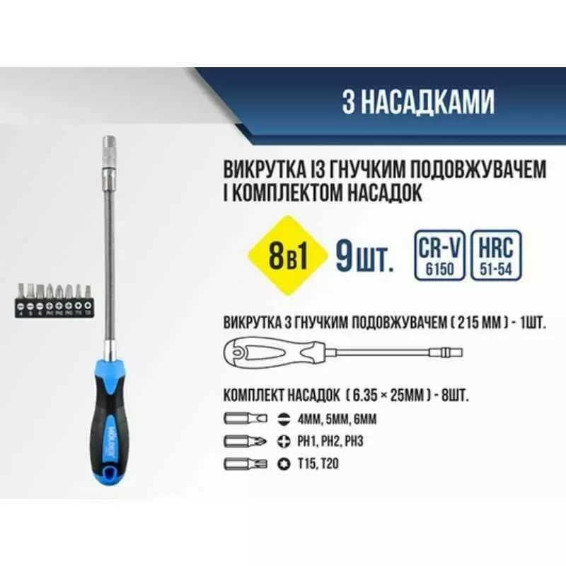 • Накінечник: PH, SL, Torx