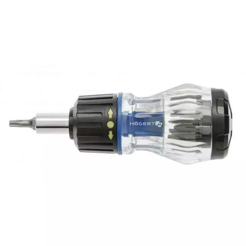 Отвертка с реверсивной рукояткой и сменными насадками 8 пр. от бренда Hogert - это незаменимый инструмент для любого мастера. Этот набор отверток позволит вам быстро и легко выполнять различные виды работ, будь то монтаж мебели, ремонт автомобиля или другие бытовые задачи.