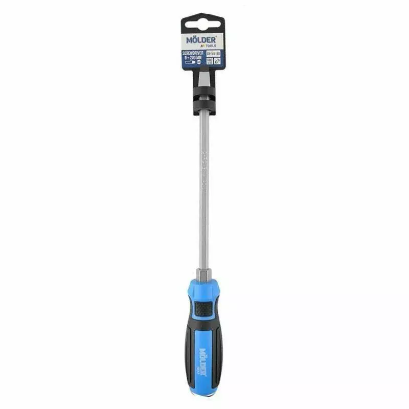 Отвертка шлицевая, ударная с шестигранной опорой Molder, SL8x200mm (12шт/уп)
