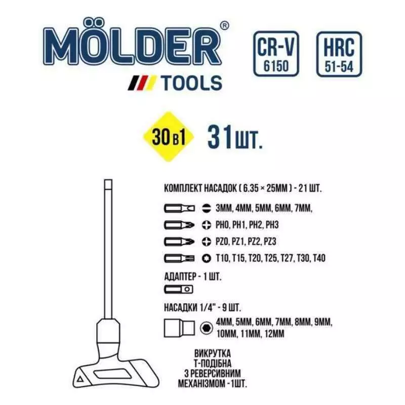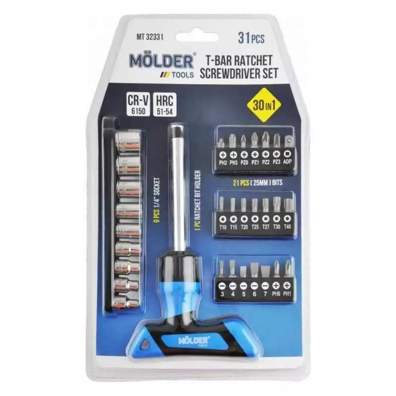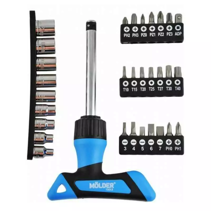 Отвертка Т-образная реверсивная с комплектом насадок Molder, 31 шт