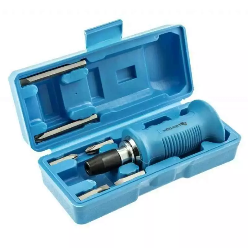 Отвертка ударная с битами Hogert CrV реверсивная с магнитным захватом PH SL (HT1S077)