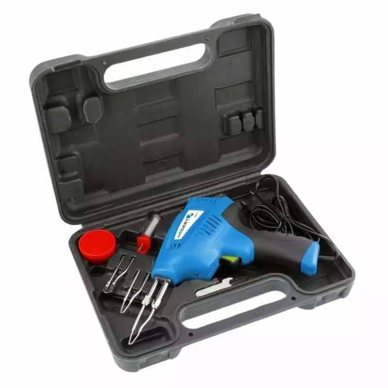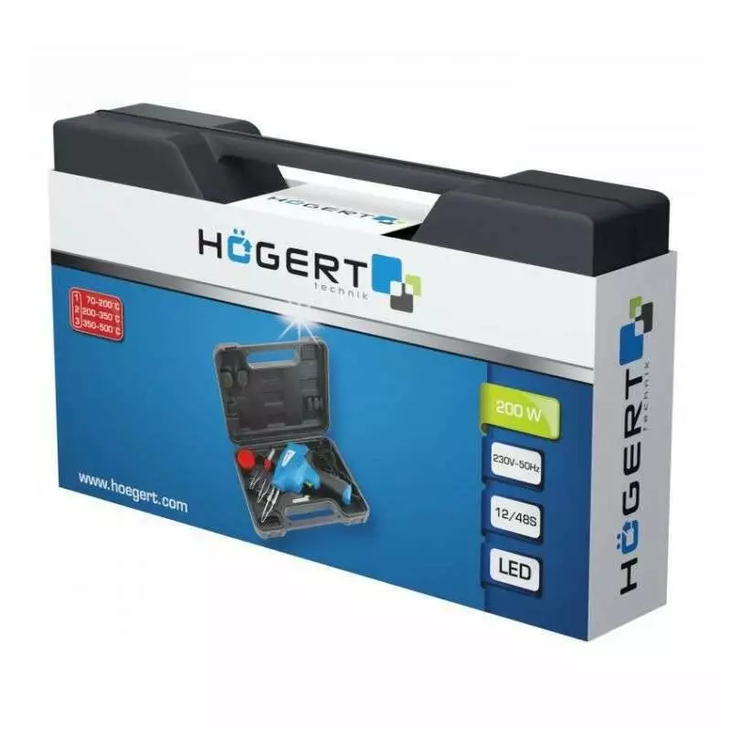 Паяльник электрический 200W 500°C Hogert 50Гц 220В со съемным жалом в кейсе (HT2C311)