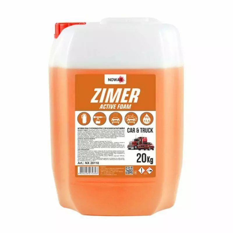 NOWAX ZIMER Профессиональноещелочное средство премиум класса для бесконтактной мойки легкового и грузового автотранспорта с высоким уровнем пенообразования. Предназначено для удаления сильных загрязнений, дорожной пыли, статической пленки, остатков насекомых и жировых загрязнений.